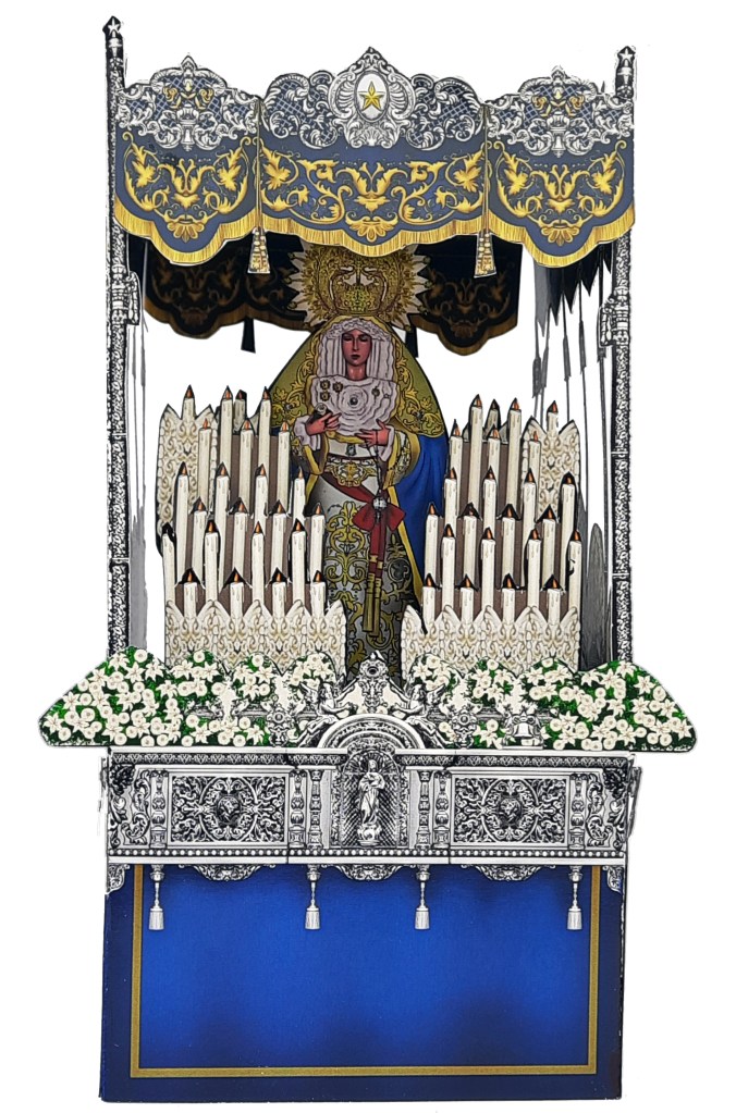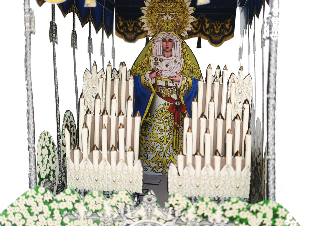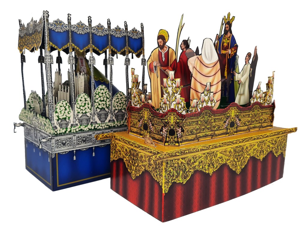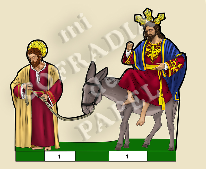Recortable de la Cofradía de la Borriquita de San Fernando (Cádiz). Incluye el paso del Stmo Cristo Rey en su Entrada Triunfal en Jerusalén (7 figuras) y el paso de Palio de Mª Stma de la Estrella.